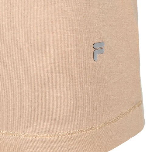 A soft flowing material sets the scene for this top. Straight cut, tone-on-tone shoulder inserts, it can be worn for many activities, including leisure. It is very comfortable to wear against the skin. A small F logo is on the lower left hem, which is slightly longer and rounded at the front.