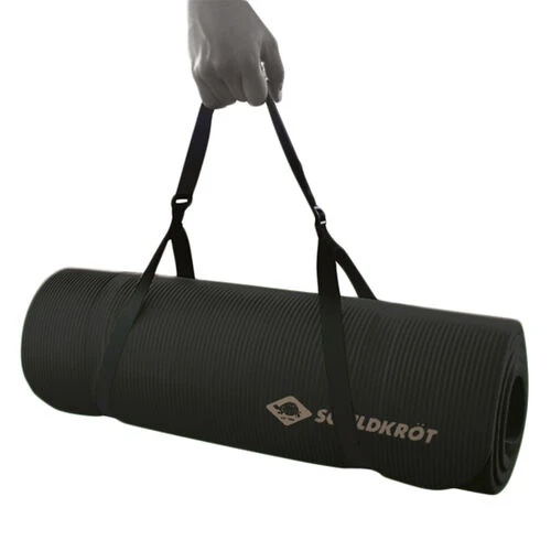 Thickness 15mm, dimension 180 x 61cm, helps you to perform exercises correctly, good cushioning due to 15mm thick synthetic rubber (NBR), the soft, non-slip and abrasion-resistant surface gives you a comfortable feeling, easy to roll up, easy to store and transport due to included carrying strap system.
