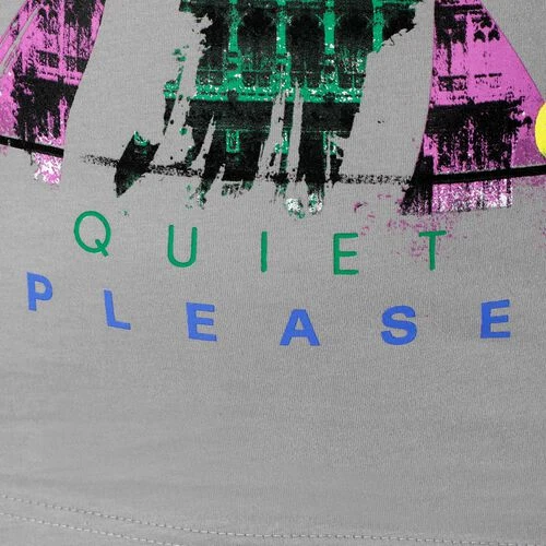 - Quiet Please lettering on the front